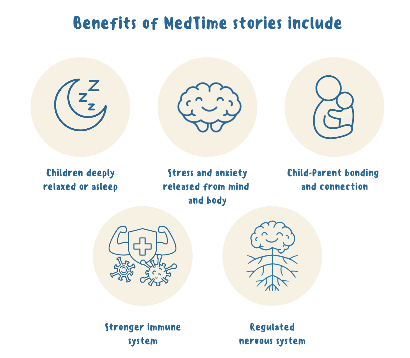 Perhaps the most important ingredient of all! Your presence and focus helps your child feel safe and loved, which fosters deep relaxation. When MedTime bedtime stories become a ritual that can be relied on, this further contributes towards feelings of connection and safety which help children feel relaxed about bedtime.